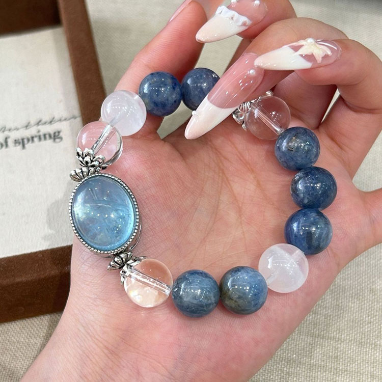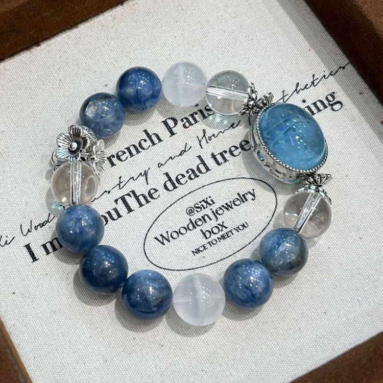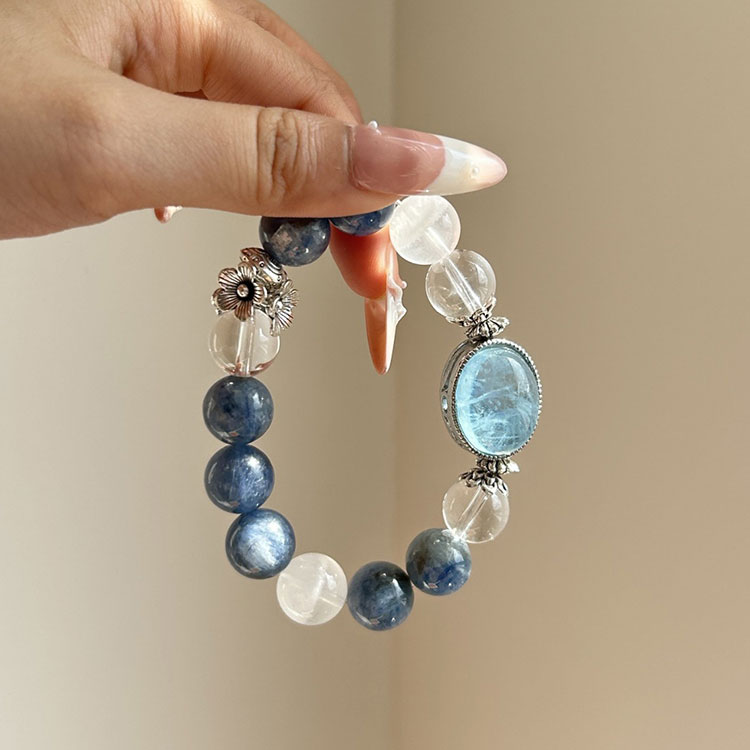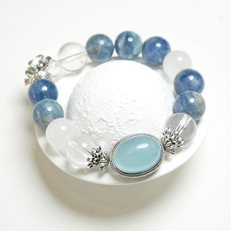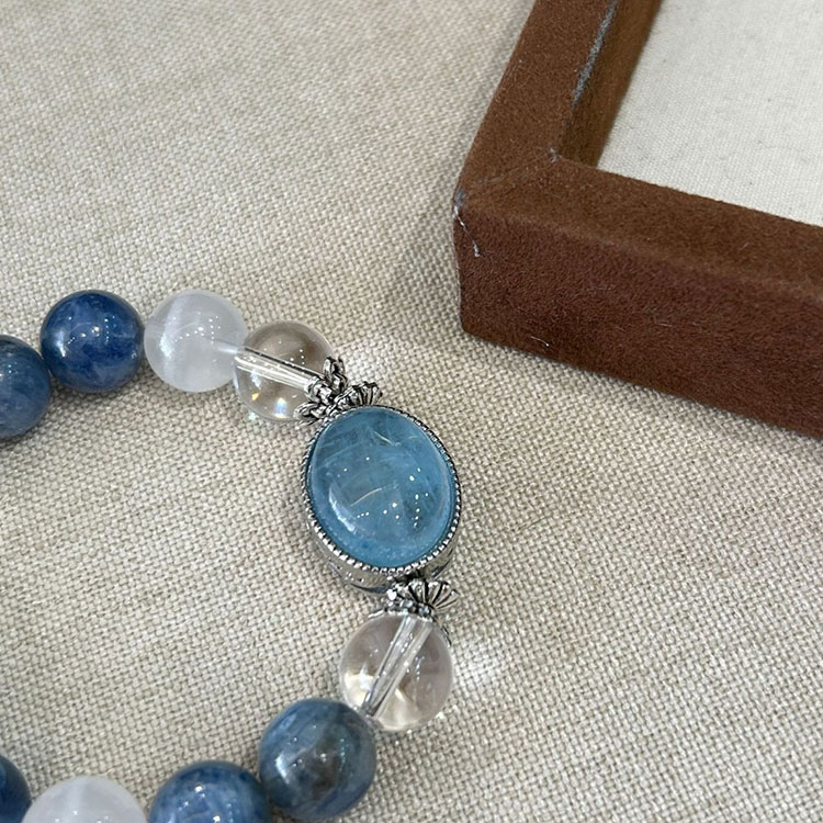 能量水晶手鍊 – 白水晶、白幽靈、藍晶石、海藍寶|紓壓.好眠.放鬆