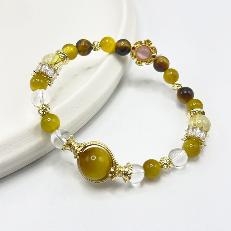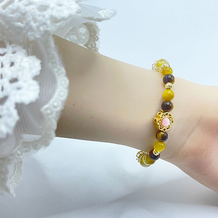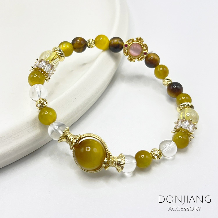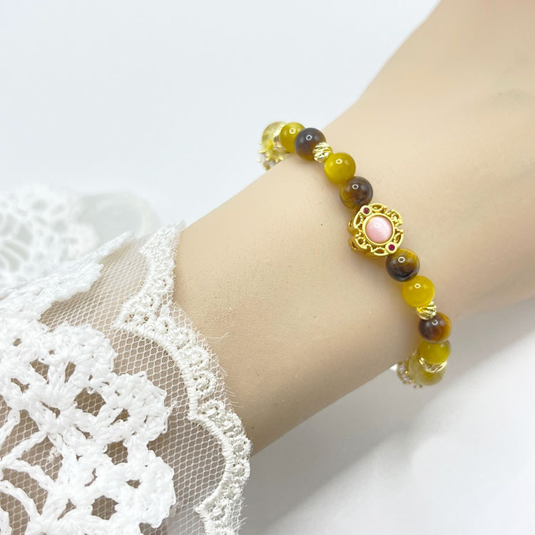 材質:鈦晶9mm / 紅虎眼6mm.8mm / 黃水晶6mm