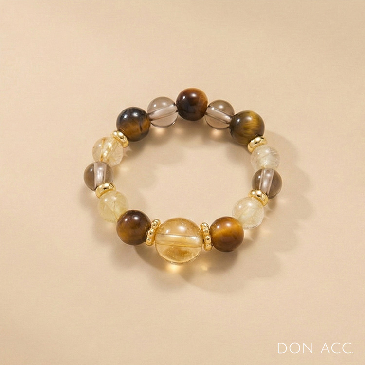材質–虎眼石、茶晶、黃塔晶、銅鍍金配件