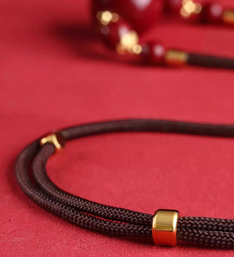 主珠選用 14–20 mm 圓珠,象徵圓滿循環;紅潤色澤凝聚喜氣,寓意 驅邪避凶、招財納福、安定心神。