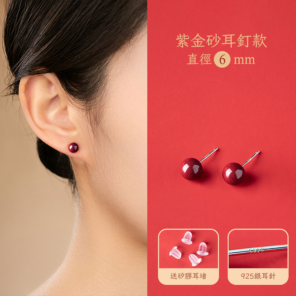 【紅塵】硃砂純銀耳針 × 歲歲平安