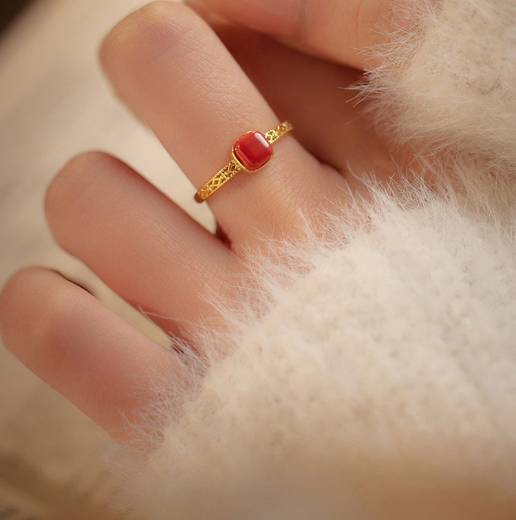 S925方糖朱砂開口戒