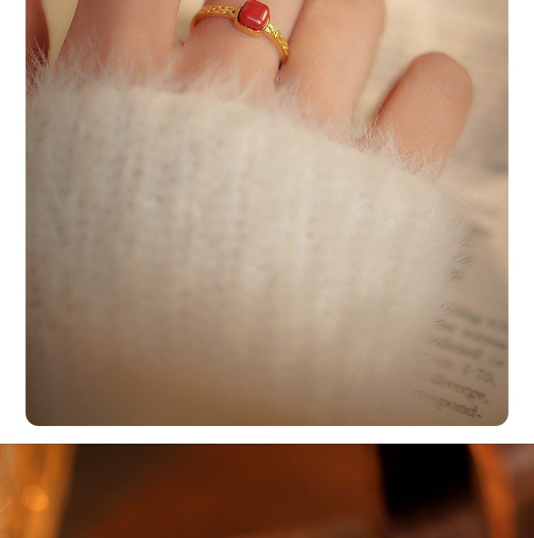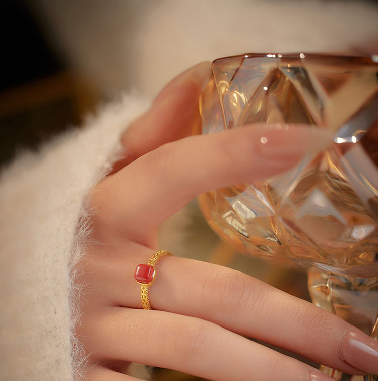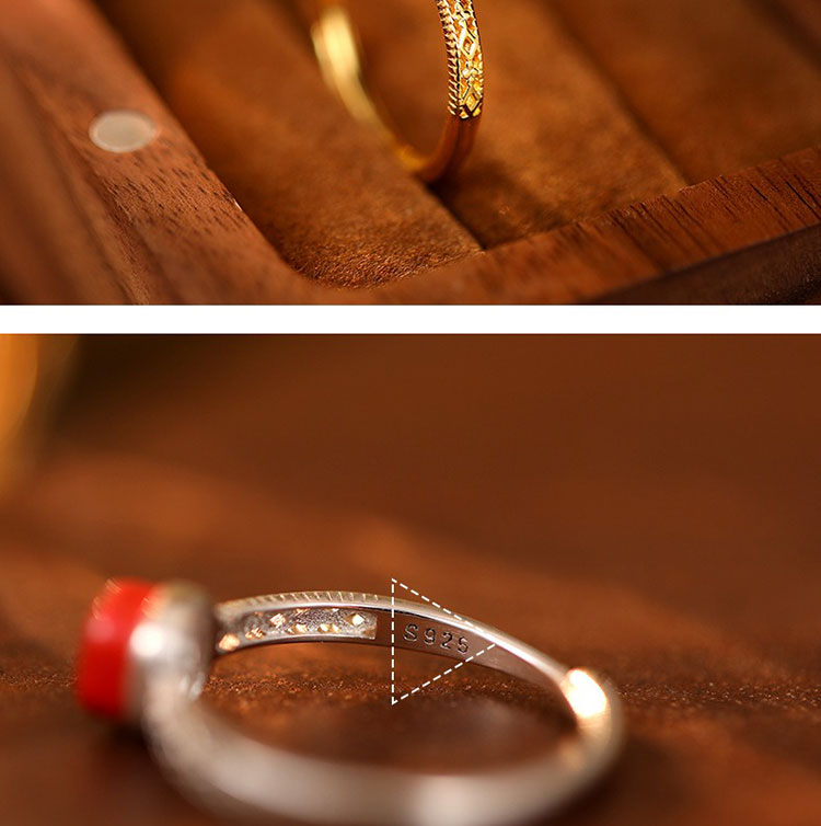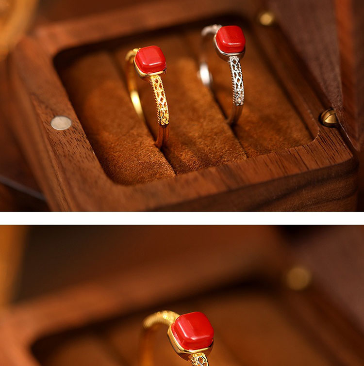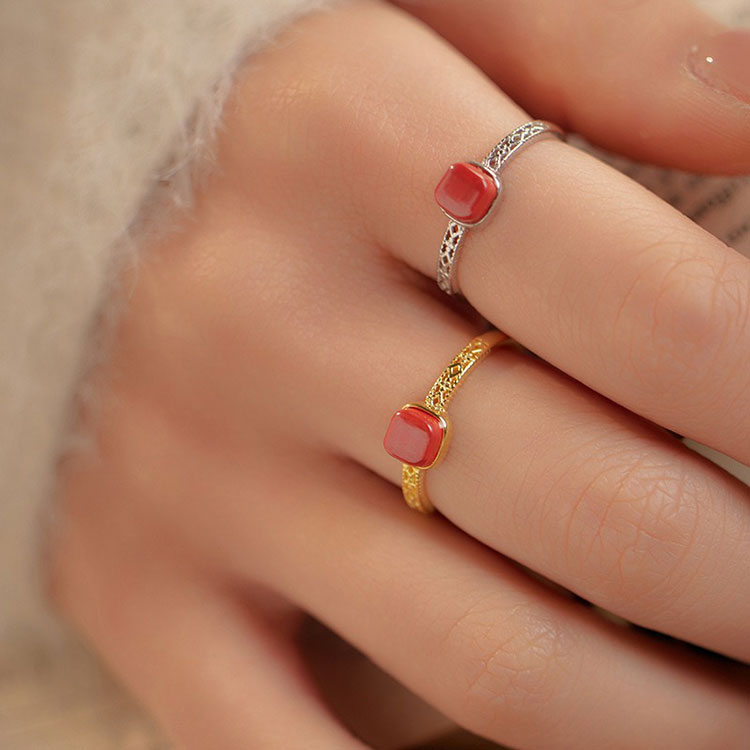 S925方糖朱砂開口戒