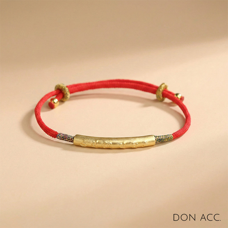 習俗說,本命年或逢太歲之年應「紮紅」。由長輩或心愛之人繫上一份紅繩祝念,即能歲歲年年平安順遂。這款「六字真言平安紅繩」專為 2026 丙午赤馬年打造,銜一彎金銀悅己,寄避邪趨吉之情,讓配戴之人無懼人間徬徨,不為歲月驚憂。